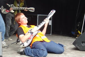 In der Zeit zwischen El*ke und Exilia haben wir uns dann zur Karaoke-Bühne, die von Jim-Beam präsentiert wurde, gemacht und Holdy, Tij und ich haben dann Rockschtar mäßig uns bewiesen und hardcore Luftgitarre gespielt. Performed wurde von uns The Offspring - The Kids aren't allright, abgefeiert von unseren Camp-Kollegen hatten wir einen riesen Spaß. Als Preis gabs jeweils ein Shirt und eine Luftgitarre, wobei wir da noch Umtauschen mussten (...mir passte das Girly-S-Shirt nicht ganz so gut)...